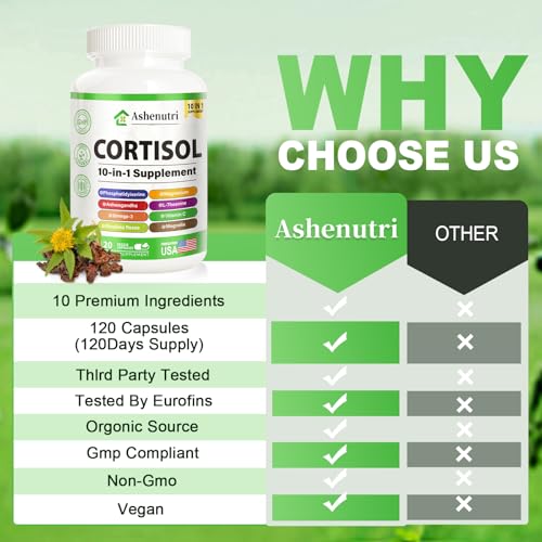 Specification: 10-in-1 Cortisol Supplement with Magnesium,Ashwagandha,Rhodiola Rosea,L Theanine,Hormone Balance for Women 120 Vegan Capsules