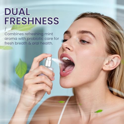 Specification: 2-Pack Probiotic Oral Spray for Long-Lasting Fresh Breath, Alcohol-Free Fresh Breath Spray with Dual Cooling Mint, Travel-Sized Mouth Freshener for On-the-Go Use