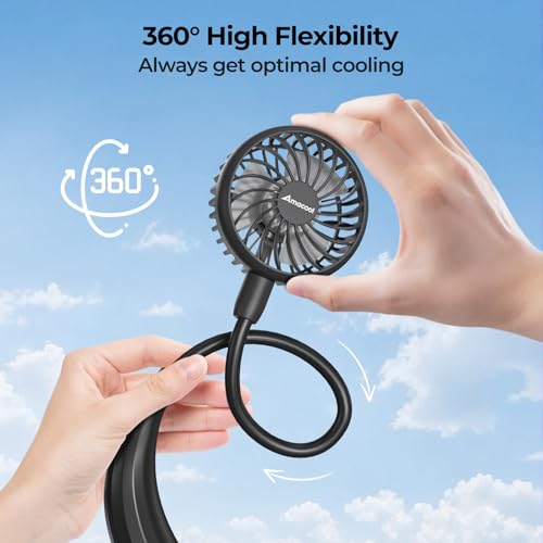 AMACOOL 2600mAh Portable Neck Fan, Wearable Hands-Free Battery Operated with Ultra Quite & Strong Wind, 360° Adjustable Personal Fan Gifts for Hot Flashes Cruise Travel Outdoor Sports 2026-Black