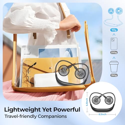 Hands-Free Wearable Comfort: This lightweight wearable fan rests comfortably around your neck, free your hands during hiking, camping, theme park, watching sports, beach trips, walking, gardening, cooking, or outdoor work—your go-anywhere cooling companion and a lifesaver for hot flashes