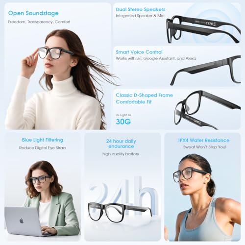 Specification: Bluetooth Smart Glasses,Blue Light Blocking Glasses for Men and Women ,Built-in Mic & Speakers,Smart Wireless Headphone Glasses for Office/Work Blue Light Filtering, Voice Control,Unisex