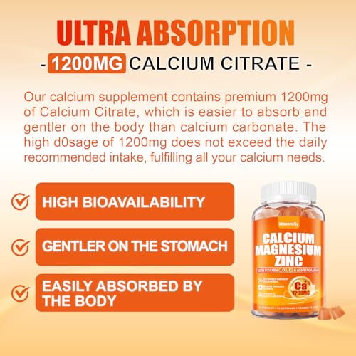 Specification: Calcium 1200 mg with Vitamin D3 Gummies for Adults – Calcium Citrate with Vitamin D3 K2, Magnesium, Zinc, Boron, Copper and Ashwagandha – Extra Absorption Calcium Supplement for Women Men