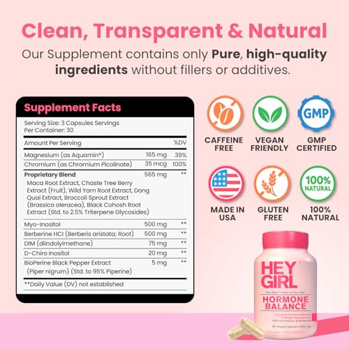 Specification: Hey Girl Hormone Balance for Women – 13-in-1 Menopause, PMS & Cycle Support – Mood & Hot Flash Support – w Myo-Inositol, Berberine, Maca Root, Black Cohosh, DIM, Dong Quai