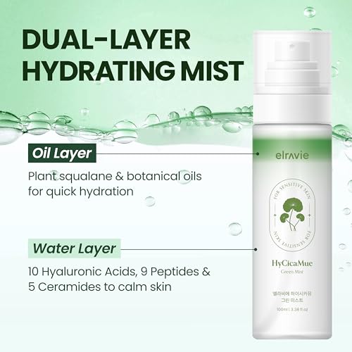 HyCicaMue Green Face Mist | Ultra-Fine Face Spray for Instant Calming & Moisturizing | Cica, Peptide, Ceramide, Hyaluronic Acid | Reduce Excess Sebum & Soothe Irritated Skin | Korean Skin Care