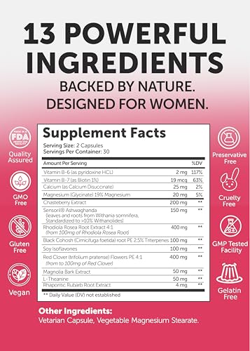 Supports Mood Balance & Emotional Wellness – Includes Rhodiola Rosea, Magnolia Bark, and L-Theanine to support emotional balance during natural life transitions.