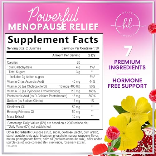 Specification: Menopause Supplements for Women – Complete Natural Mild Hot Flashes & Night Sweats Support, Multi Benefit Menopause Relief Gummy, Support for Balance & Energy, Gluten-Free & Non-GMO – 60 Gummies
