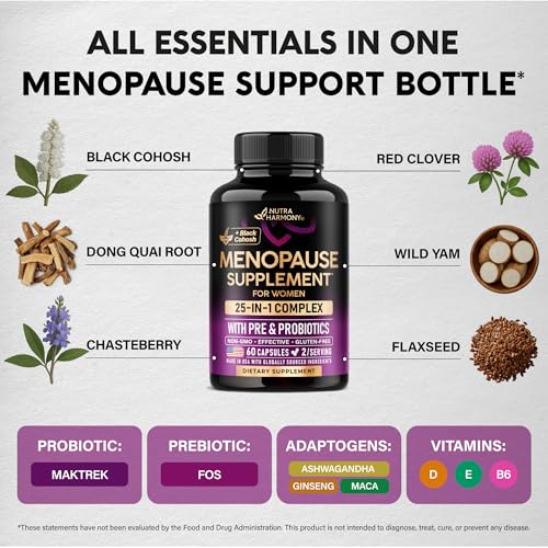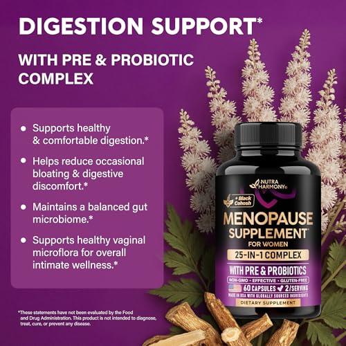 Specification: Menopause Supplements for Women – Dong Quai, Black Cohosh, Pre & Probiotics – Sweats & Hot Flashes Relief – Digestion, Sleep & Mood Support – 25-in-1 Perimenopause Complex – Made in USA – 60 Capsules