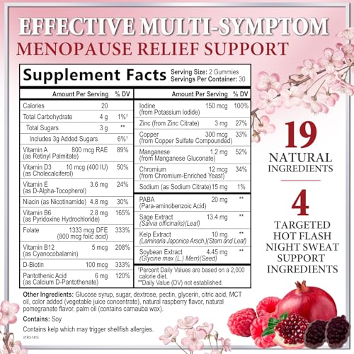 Specification: Menopause Supplements for Women Gummies – Complete Natural Mild Hot Flashes & Night Sweats Support, 16 in 1 Multi-Benefit Female Menopause Relief Gummy, Support for Balance & Energy – 60 Gummies