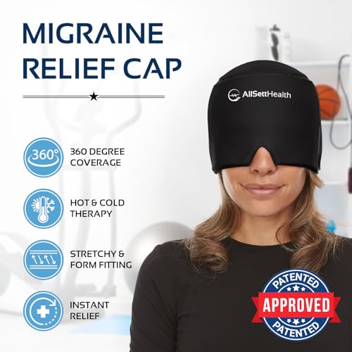 Migraine Relief Cap Ice Head Wrap and Hat | Hot/Cold Gel Pack with Face and Eye Mask Compress for Headache Relief – Black