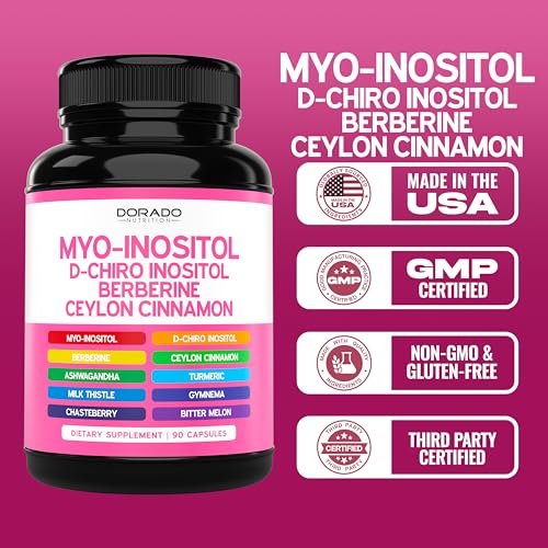 Myo-Inositol & D-Chiro Inositol Supplement For Women (90 Capsules, 40:1 Ratio Myo Inositol) Hormone Balance for Women – 10 in 1 Formula – Third Party Tested, Vegan Safe & USA Made – (90 Count)