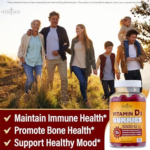 Specification: NEW AGE Vitamin D3 5000 IU 125mcg Gummies – Immune Supplement – Non-GMO, Gluten-Free, Dairy-Free, No Gelatin (120 Gummies (Pack of 2))