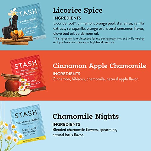Stash Tea Soothing Herbal Tea 6 Flavor Variety Pack, 6 Boxes With 18-20 Tea Bags Each