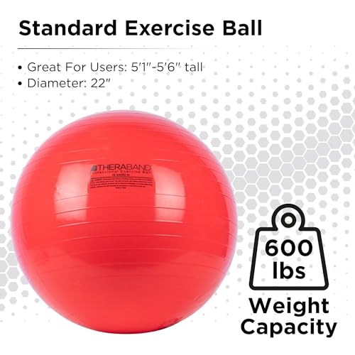 Specification: THERABAND Exercise Ball, Stability Ball with 55 cm Diameter for Athletes 5’1″ to 5’6″ Tall, Standard Fitness Ball for Posture, Balance, Yoga, Pilates, Core, & Rehab, Red