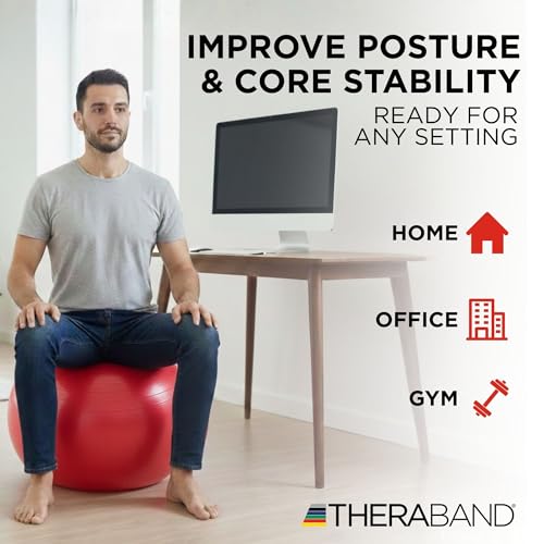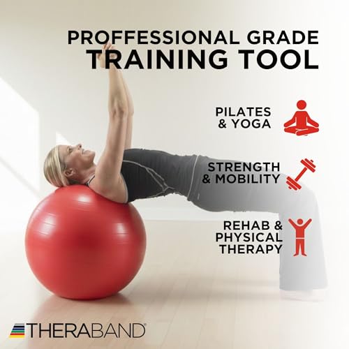 THERABAND Exercise Ball, Stability Ball with 55 cm Diameter for Athletes 5’1″ to 5’6″ Tall, Standard Fitness Ball for Posture, Balance, Yoga, Pilates, Core, & Rehab, Red