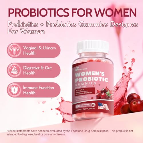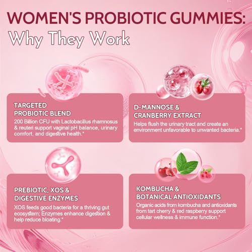 Specification: Vaginal Probiotics for Women Gummies, 200 Billion CFU Prebiotics and Probiotics Gummies for PH Balance & Urinary Health, with Kombucha, Akkermansia for Digestive Health, Cranberry Flavor, 60 Count