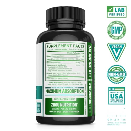 Specification: Zhou DIM Active – DIM Supplement, Hormone Balance for Women & Men, Hormonal Support with 250mg Diindolylmethane – 60 Vegan Capsules